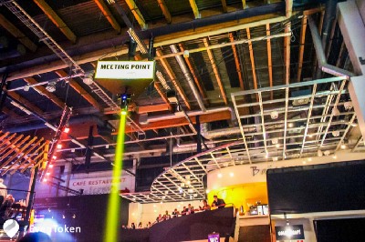 會場中到處都有不同顏色的光束,從天空打到地上來,大家約碰面交流就會挑某一個顏色的光束集合,這方法還蠻新鮮的。