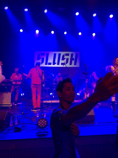 這個我覺得超值得國內策展人學習的,在展會開始的前一天晚上,Slush就先幫你熱身,打開你的身心靈去擁抱這場科技展會,包下一個超有fu的場地,裡面有卡拉ok、交誼空間,主舞台更是請來樂團唱耳熟能詳的歌曲來炒熱全場氣氛,唯一美中不足的是酒要自費,但摸著良心說,芬蘭的Gin調酒真的超好喝,我覺得10歐是很合情合理的價格。