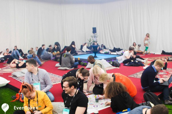 會場本身超級大的,步行繞一圈應該要15–20分鐘吧,有衣物背包行李收納區(這超需要)、攤位區、食物區、Coffee Shop、媒體工作室,超級貼心的一點是還有冥想室,非常的尊重多元的文化及各國人不同的需求。